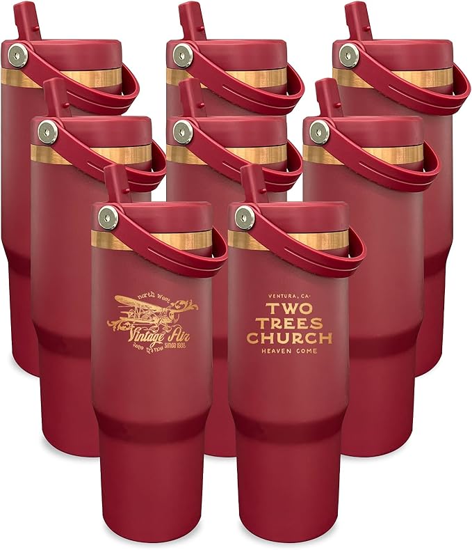 30 oz Tumbler Bulk with Handle and Straw, Vacuum Insulated Tumblers with Flip Straw and Top Handle, Leakproof Powder Coated Tumbler, Stainless Steel Travel Mug for Coffee Water (Red, 8 Pack)