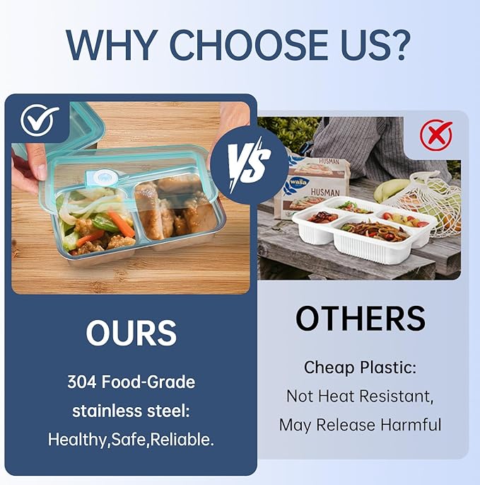 - 【Intelligent Dual-Zone Design】Two isolated compartments stop flavor transfer - excellent for organizing finger foods, fresh produce, and spreads. Perfect for measured servings and meal planning, it preserves food integrity and avoids moisture absorption when stored.