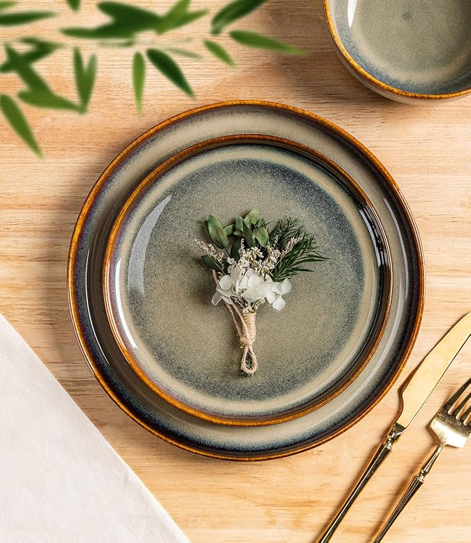 - HANDCRAFTED WITH UNIQUE BEAUTY: Every plate and bowl in our collection is expertly handcrafted by skilled artisans, showcasing the beauty of traditional craftsmanship. The pieces are finished with a Double Reactive Glaze, which creates a unique, rich color that varies slightly with each item. This ensures that every set is distinct, adding a personal touch to your dining experience.