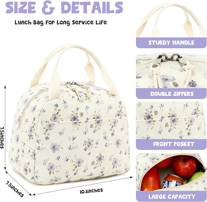 - Spacious and Lightweight:Lunch bag women measures L10.6 x W 6.3 x H 8.6inches, 0.38 pounds,Lunch tote bag for girls is spacious enough to fit your lunch box. Insulated Cooler with perfect standard size can keep your food cool or warm. Allow your food to be fresh and delicious.