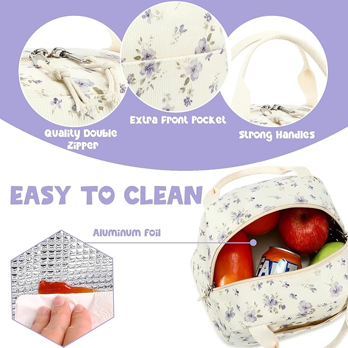 - Cute Lunch Bag:The lunch cooler bag is made of sturdy fabric and precision linear,leak-proof, thickened anti-collision, easy to clean,keep cool and fresh and long-lasting insulation.The lunch tote handle has beenreinforced metal zippers have been used to ensure the lunch kit's maximum durability which is easy to clean.Two ways zipper for easy access.