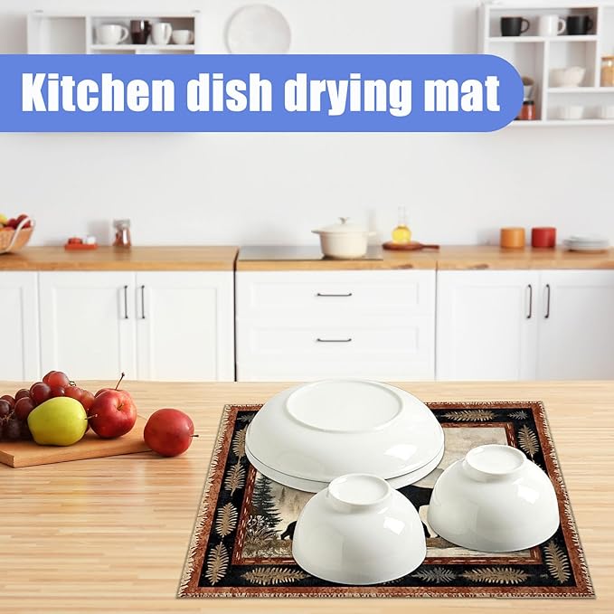 Rustic Bear Dish Drying Mat for Kitchen Counter Wild Animals Drying Pad Absorbent Reversible Dish Drainer Rack Mats Draining Pad 18"x24"Inch