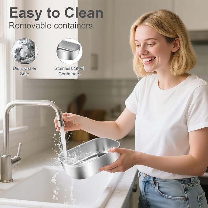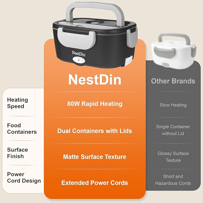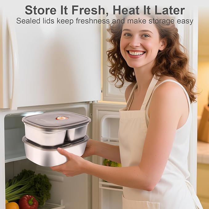 - 【Leakproof & Fridge-Friendly Storage】Each container comes with a sealing lid to prevent spills and odors, letting you store food in the fridge with confidence. When it’s time to eat, just remove the lid before heating to avoid pressure buildup, place the container in the heater, and enjoy warm meals