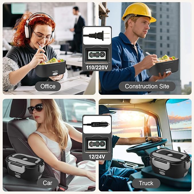 - 【For Home, Office & Car Use】With dual power cables for 110V (home/office) and 12V/24V (vehicles), this versatile electric lunch box ensures you can enjoy a hot meal wherever your day takes you—perfect for commutes, long drives, or job sites