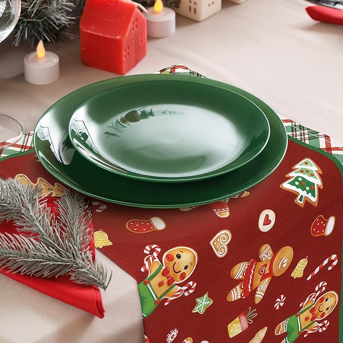 Christmas Gingerbread Napkins, 18×18 Inch Dinner Cloth Napkins Set of 4, Washable Cotton Soft Absorbent Square Table Top Decoration for Dining Kitchen Party Wedding