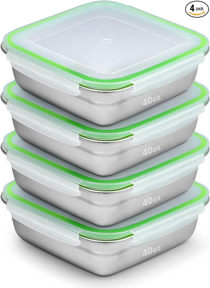 - 【Premium 304 Stainless Steel】Crafted from high-quality, food-grade 304 stainless steel, these containers are rust-resistant, non-toxic, and built to last. They preserve the natural taste of your food without absorbing odors or stains, ensuring every meal is fresh, clean, and healthy.