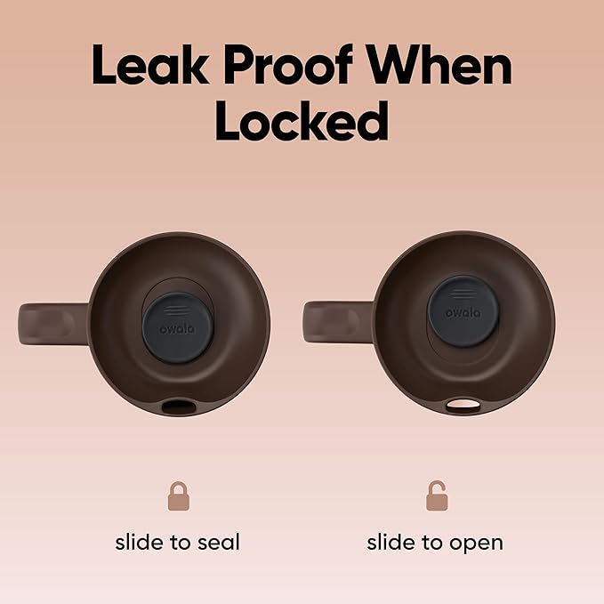 Owala SmoothSip Slider Stainless Steel Insulated Travel Mug with handle, 100% Leak Proof, For Hot and Cold Drinks, Travel Friendly with Sliding Lock Lid, 24 oz, BPA Free, Leak Proof, Cozy Cocoa