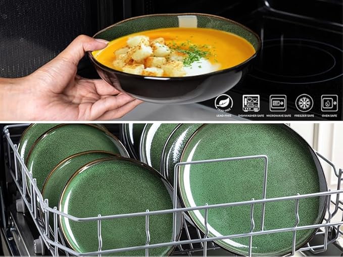 - 【LEAD FREE EAT SAFTY】Our plates and bowls set is made of druable material and features an all-natural glaze that is lead-free, cadmium-free. The set is fired at a high temperature of 2340℉ for 17 hours to ensure its durability and safety. With this dinnerware set, you'll never have to worry about any health problems.