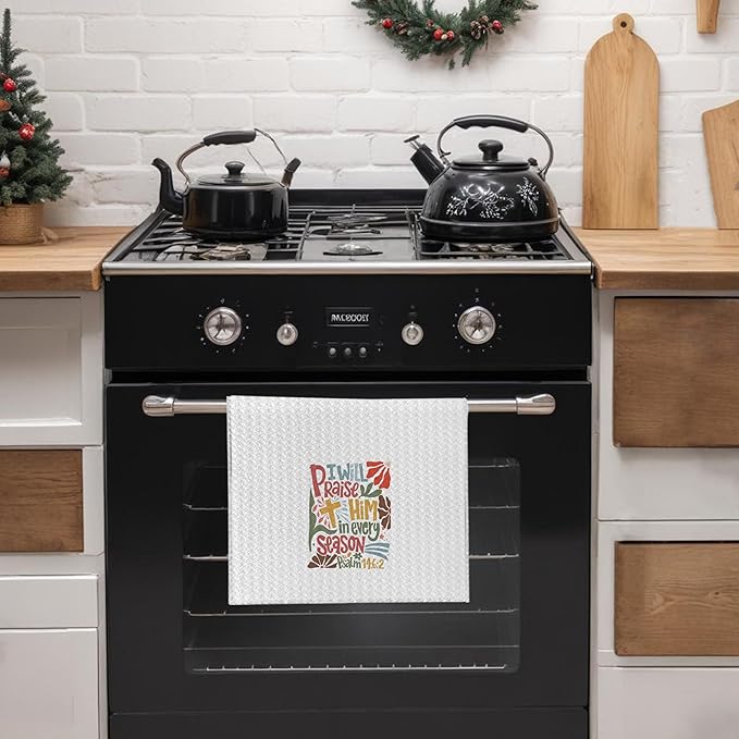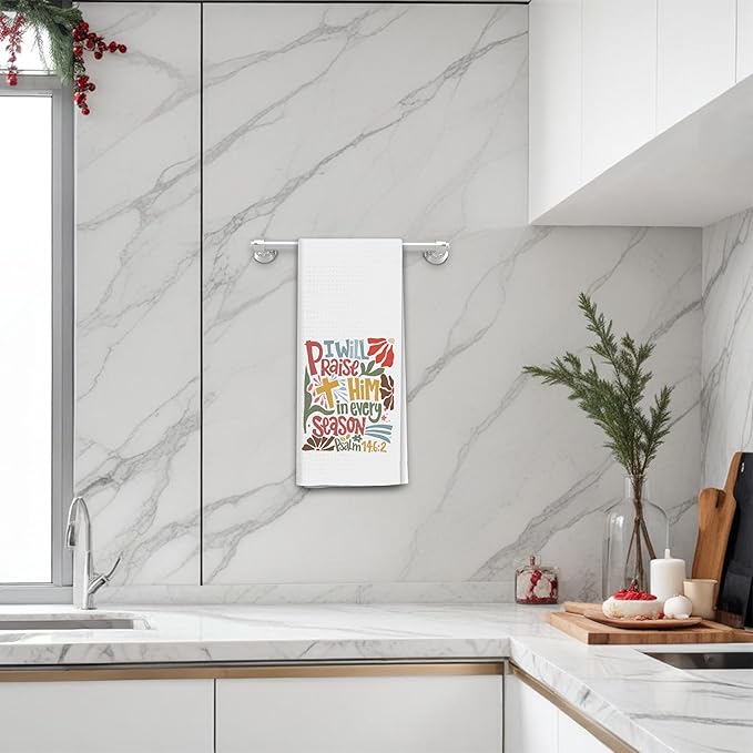 Boho Floral Christian Kitchen Towels, Christian Religious Gifts Dish Tea Towels for Kitchen, Psalm 146:2 Bible Verse Decorative Hand Towel for Bathroom, 16x24 Inch