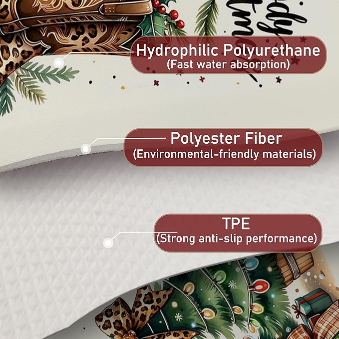 Western Christmas Tree Dish Drying Mat, Leopard Bow Cowgirl Christmas Coffee Bar Mat for Countertops, Holiday Xmas Absorbent Dish Drying Mats for Kitchen Counter Coffee Maker, 16x24 Inch