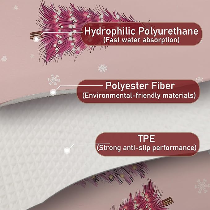 Pink Christmas Tree Dish Drying Mat, Winter Snowflake Xmas Tree Coffee Bar Mat for Countertops, Preppy Christmas Absorbent Dish Drying Mats for Kitchen Counter Coffee Maker, 16x24 Inch