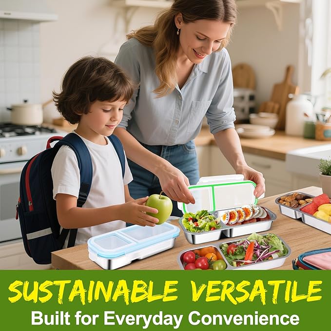 - 【Environmentally friendly & Reusable – A Smarter Choice Than Plastic】Unlike flimsy plastic snack containers that warp, stain, or absorb odors, our stainless steel food storage containers are 100% recyclable and built to last. Reduce single-use waste with a sturdy snackle box container that’s dishwasher-safe and won’t retain food smells.