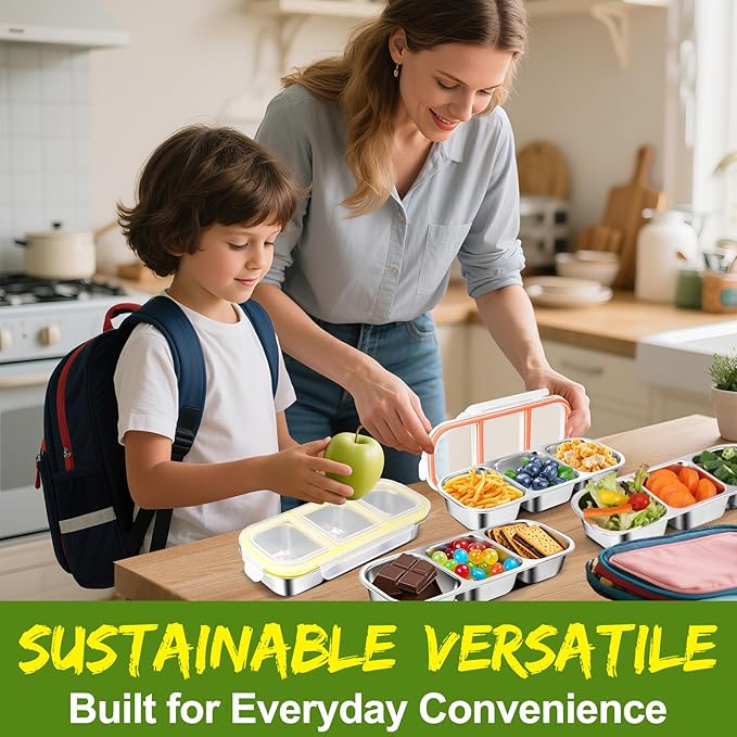 - 【Environmentally friendly & Reusable – A Smarter Choice Than Plastic】Unlike flimsy plastic snack containers that warp, stain, or absorb odors, our stainless steel food storage containers are 100% recyclable and built to last. Reduce single-use waste with a sturdy snackle box container that’s dishwasher-safe and won’t retain food smells.