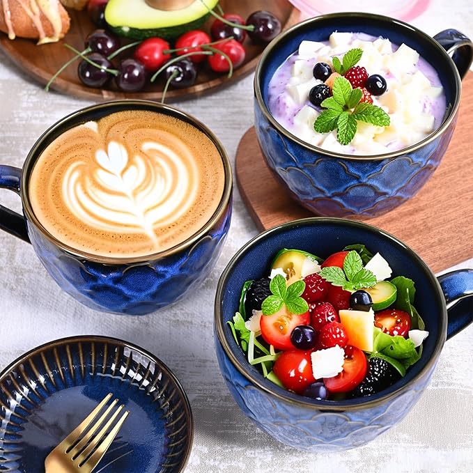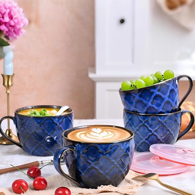 - âš–24oz Capacity & Ergonomic Handle: The soup cups with lids holds 710ml hot/cold beverages; Wide-diameter handle ensures comfortable grip, perfect for oatmeal, dessert or smoothies.this thick ceramic is not too heavy or light, but sturdy. Perfect size for cappuccino, latte, hot cocoa or hot tea for your needs in the office, home, restaurant, cafe, bar,etc.