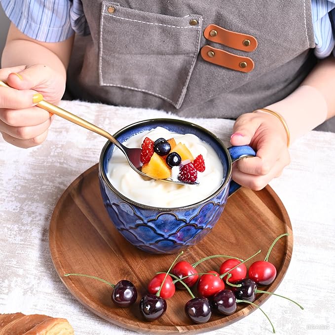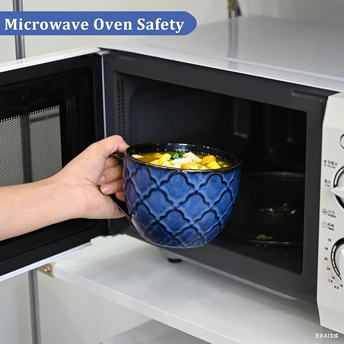 - 🎨Unique Hand-Painted Art: Each soup cups has an original indigo pattern hand-painted by artisans, with manual coloring creating natural indigo shade variations. Crafted from high-quality porcelain and high-fired, the glaze shows a natural color gradient from kiln temperature changes—unlike traditional uniform hues. Hand-painted layers plus reactive glaze kiln effects make every large soup bowls a unique artisan piece.