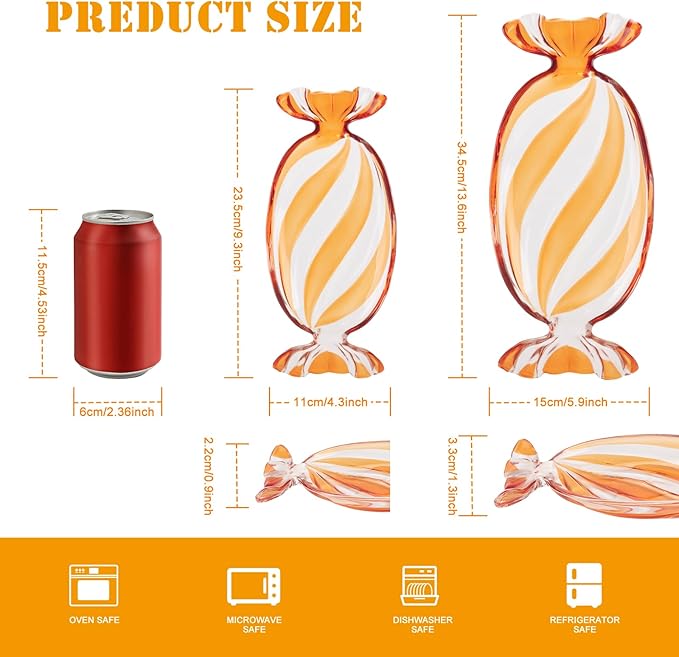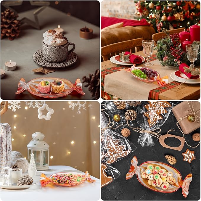 - š¬ć High Quality ć-- Crafted from fine glass, wall thickness is not easy to damage. This large candy shaped serving platter adds a delightful charm to every table and makes a perfect Christmas home decor piece.