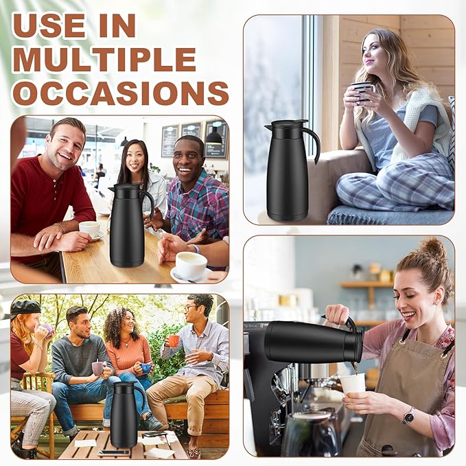 - Insulated and Practical: featuring double-wall vacuum insulation, these coffee carafes maintain your beverages at the ideal temperature for hours; The tightly sealed lid helps lock in heat or cold, so you can enjoy fresh coffee, tea, or iced drinks anytime, without reheating