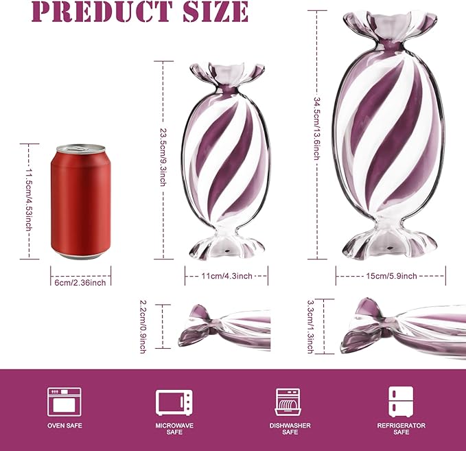 - š¬ć High Quality ć-- Crafted from fine glass, wall thickness is not easy to damage. This large candy shaped serving platter adds a delightful charm to every table and makes a perfect Christmas home decor piece.