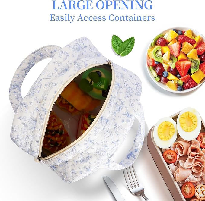 - Quilted Elegance for Commutes, Work, and Everyday Use-Crafted with beautiful printed quilted fabric, this lunch tote blends softness and style. The roomy interior easily fits lunch boxes, fruit, and drinks—perfect for the office, school, outdoor lunches, or daily errands