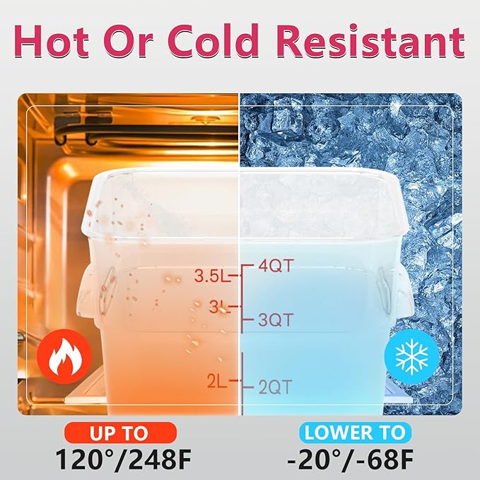 - 【Clear Measurements】Each restaurant containers with lids features clear measurement markings in both liters and quarts, allowing for quick, accurate portioning at a glance. Designed with sturdy side handles, the containers are easy to lift, move, and pour.