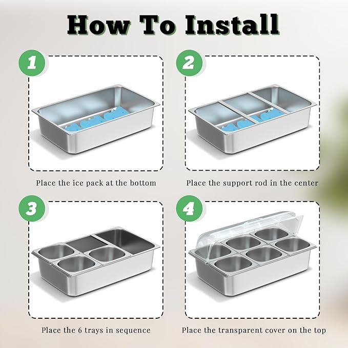- 【Keeps Food Fresh – Hot or Cold】Designed with space under the pans to hold ice packs or hot water, the cold food buffet server keeps your food at the perfect temperature for hours. Ideal for salads, sushi, seafood, sauces, fruits, and more—whether you’re serving chilled or warm dishes.