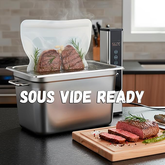 - 【MULTI-PURPOSE】 Ideal for freezing, cooking and storing food, snacks or leftovers. Also great for packing lunches, cosmetics, craft supplies and more. Tip: keep upright when holding liquids; suitable for sous-vide cooking