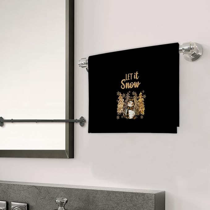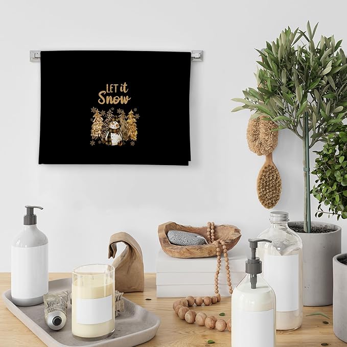 Black Gold Christmas Snowman Kitchen Towels, Christmas Tree Winter Snowman Dish Towels, Let It Snow Xmas Decorative Hand Towels for Bathroom, Winter Xmas Kitchen Bathroom Decor(16x24 Inch)