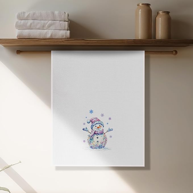 Trendy Disco Snowman Winter Kitchen Towels, Glitter Christmas Snowman Dish Tea Towels, Holiday Winter Snowflake Christmas Decorative Hand Towel for Kitchen Bathroom, 16x24 Inch