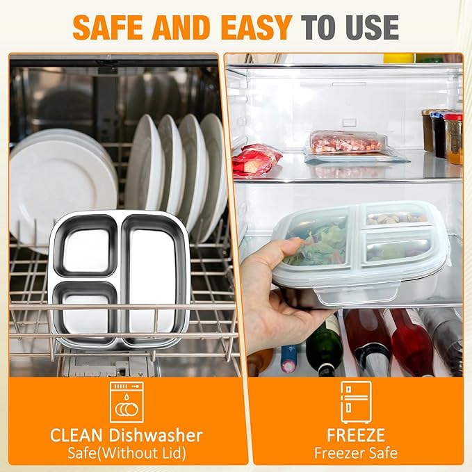 - Easy to Clean: The stainless steel containers with lids can be washed by hand or in the dishwasher, making cleaning quick and effortless. Even with repeated use, it won't leave stains or odors