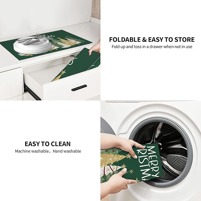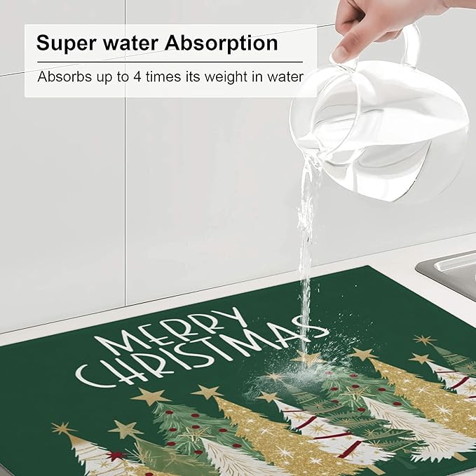 Christmas Dish Drying Mat for kitchen Counter Microfiber Merry Christmas Dish Drying Mat for Dishes Absorbent Reversible Large Kitchen Dish Drying Pad Rack Mat 18x24 Inch