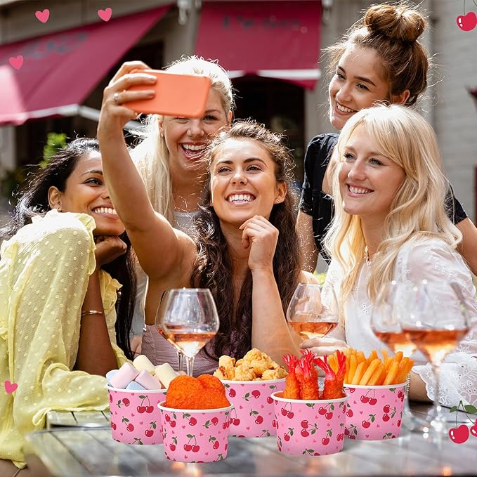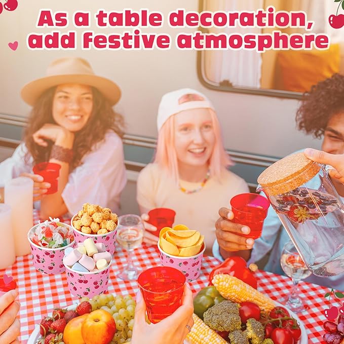 - Cherry Theme: detailed with cherry theme on a hot pink background, these cherry paper snack bowls instantly add interest to the decoration and atmosphere; The overall style is elegant, attractive and sophisticated, whether for an ice cream themed party or a simple family event, these cute cherry paper cups are ideal tableware decorations