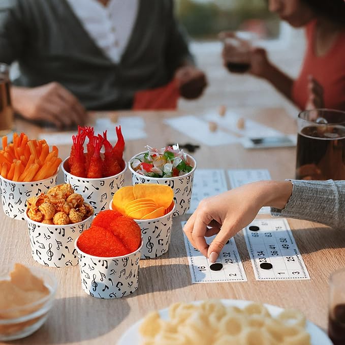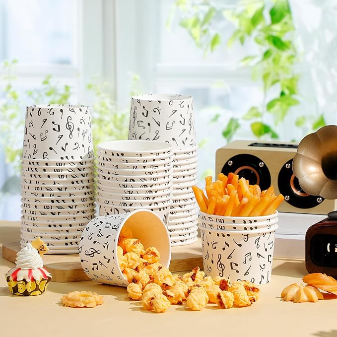 - Music Notes Theme: detailed with musical notes theme on a white background, these music paper snack bowls instantly add interest to the decoration and atmosphere; The overall style is elegant, attractive and sophisticated, whether for an ice cream themed party or a simple family event, these cute music notes paper cups are ideal tableware decorations