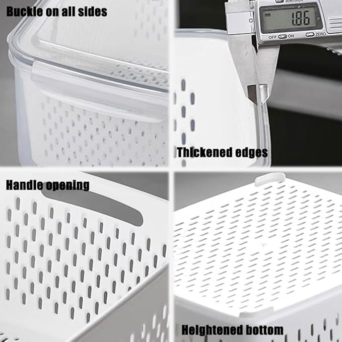 - 【Drain, Rinse & Store】All-in-one storage with removable colanders lets you wash, soak, drain, and store in one container. Perfect for berries, salad, bacon, or dry snacks like nuts, seeds, and grains
