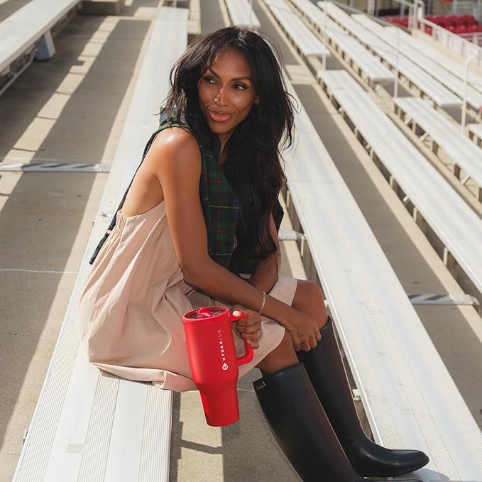 HydroJug Traveler - 32 oz Water Bottle with Handle & Flip Straw - Fits in Cup Holder, Leak Resistant Tumbler-Reusable Insulated Stainless Steel & Rubber Base - Gifts for Women & Men, Alumni Red
