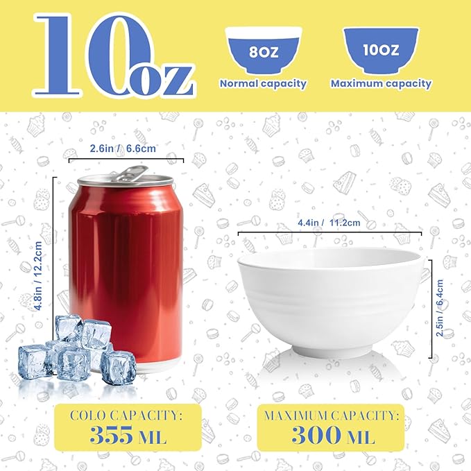- VERSATILE USE: With a practical 10oz capacity, these bowls are ideal for desserts, snacks, ice cream, fruits and Appetizers. They can also be used as lunch bowls for kids. Available in multiple vibrant colors that coordinate well with your existing tableware, they are the perfect way to upgrade your dining aesthetic with style and function.