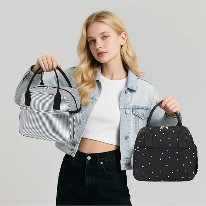- 【FASHION ITEMS】The front of this lunchbox is designed with quilted. Simple and elegant design is a great item to pair with different clothes every day. It can blends in with your attire and isn’t too flashy or tacky. This bag looks good with purse and briefcase.