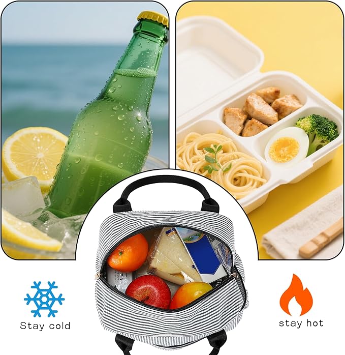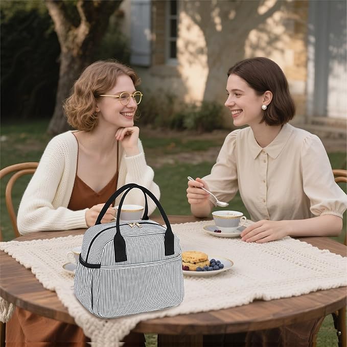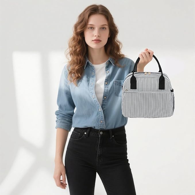 CAMTOP Lunch Box for Women Men Insulated Lunch Bag Lunch Tote Bag Leakproof Thermal Cooler Large Capacity for Travel Work School Picnic (Black white stripes)