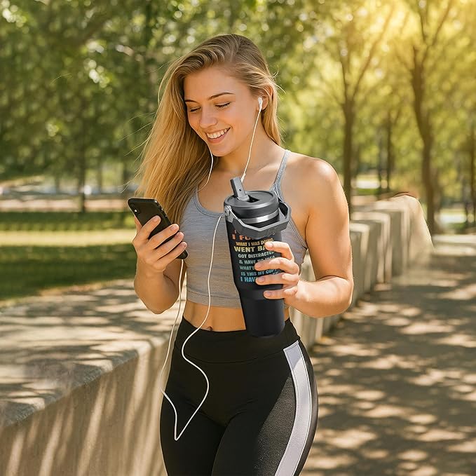 - 30OZ LARGE CAPACITY WITH HANDLE – Big enough for coffee, tea, or iced drinks. The sturdy carry handle makes it easy to bring anywhere – office, road trips, gym, or daily commute.