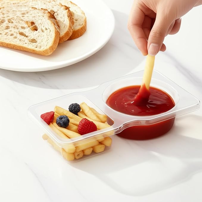 - 2 COMPARTMENT SNACK CONTAINERS: Our dual-compartment condiment container keeps sauces and snacks separate, making it ideal for parties, picnics, and family gatherings. Enjoy multiple flavors without the worry of mixing