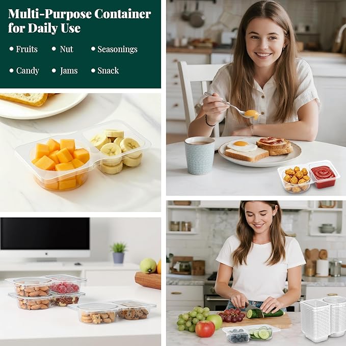 - 2 COMPARTMENT SNACK CONTAINERS: Our dual-compartment condiment container keeps sauces and snacks separate, making it ideal for parties, picnics, and family gatherings. Enjoy multiple flavors without the worry of mixing