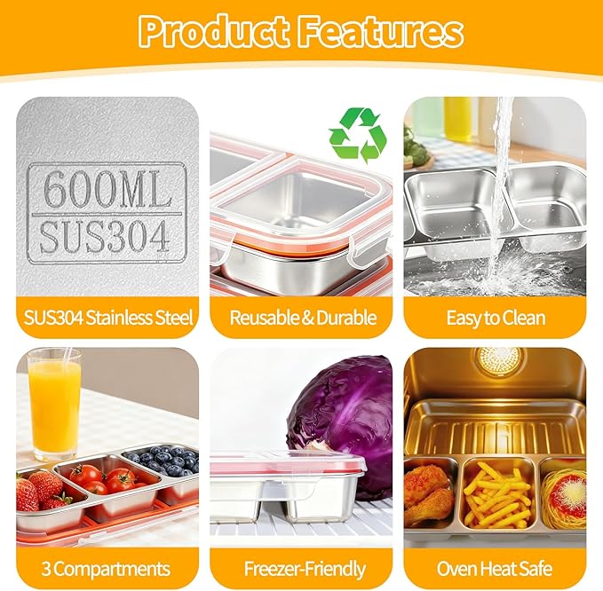 - 【304 Stainless Steel & Leak-Proof Design】Crafted from 304 stainless steel—naturally rust-proof, odor-resistant, and totally safe for daily use! The star here? Our Leak-Proof lid—a ultra-tight, secure lid that locks in every drop. No more spills of soups, dressings, juicy fruits, or runny sauces in your bag. Your lunch stays intact, your bag stays clean, and you stay stress-free, guaranteed.