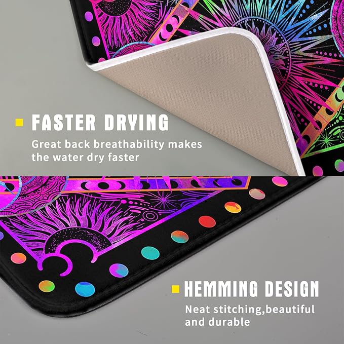 Purple Absorbent Dish Drying Mat Sun and Moon Microfiber Drying Pad for Kitchen Counter Decor Small