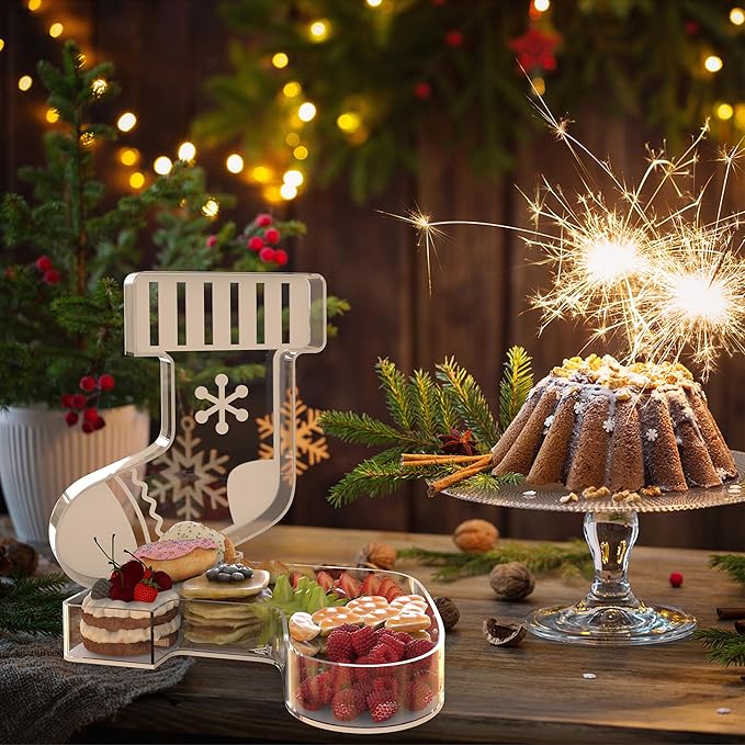 11" Christmas Stocking Charcuterie Boards, Acrylic Reusable Serving Tray for Dessert Appetizer Display, Cute Decorative Snack Platter for Xmas Party Table Decoration