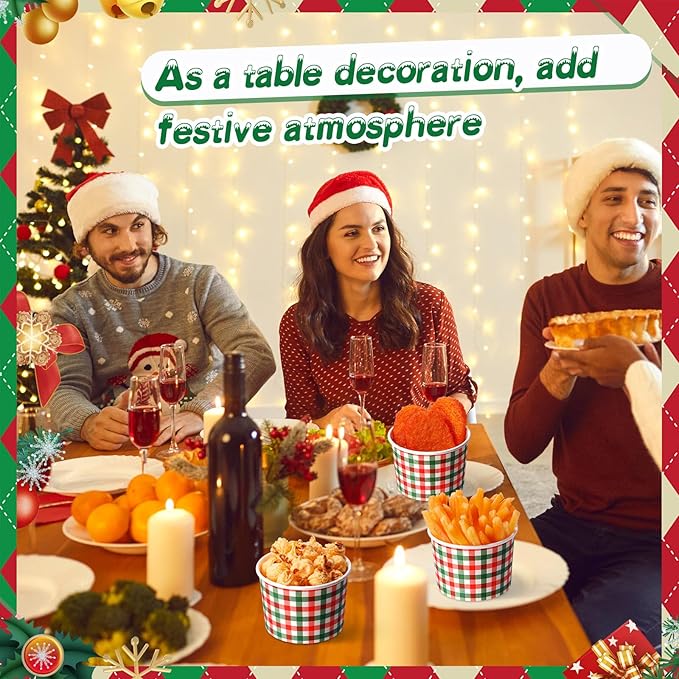 - Christmas Plaid Theme: our paper snack bowls featuring Christmas theme, designed with buffalo plaids and mainly colored in red and green, instantly add interest to the decoration and atmosphere; The overall style is elegant, bright and sophisticated, whether for an ice cream themed party or a simple family event, these red and green checkered paper cups are ideal tableware decorations