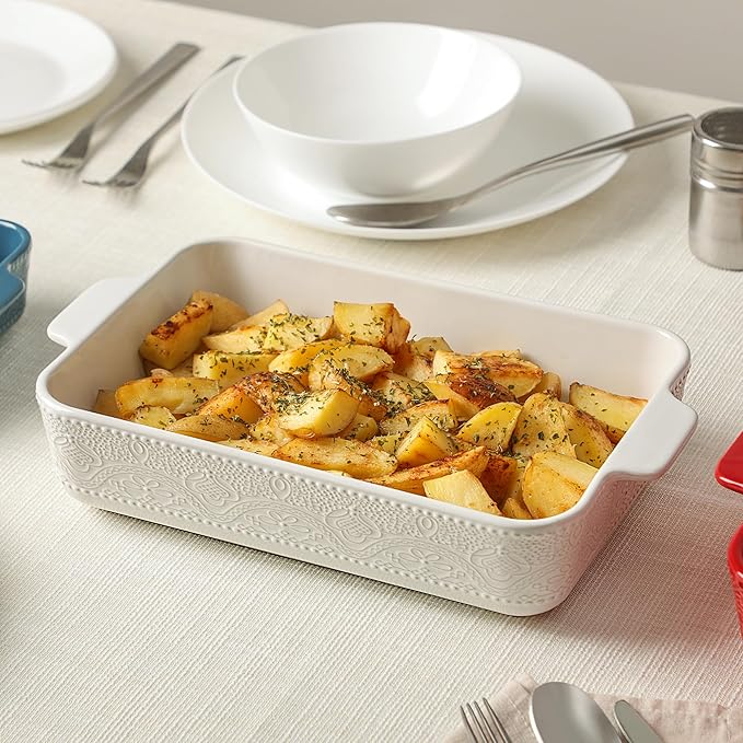 Ceramic Baking Dish Set of 3, Casserole Dishes for Oven, Ideal for Baking, Stewing, Roasting, and Holiday Feasts. The Gift for Mother's Day, Thanksgiving, Christmas, or Housewarming(Bright White)