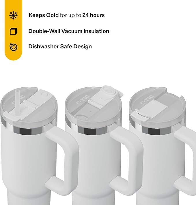 RTIC 30 oz Road Trip Tumbler Double-Walled Ceramic Lined InsulatedStainless Steel Portable Travel Coffee Mug Cup with Lid, Handle and Straw, Cool Grey