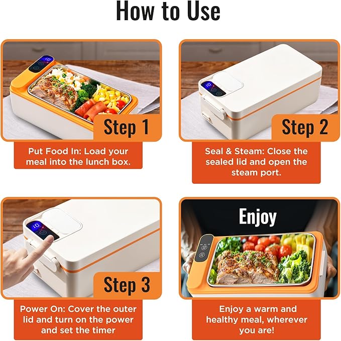 - Leak-Proof & Reliable: Built with a secure sealing system, including an airtight lid and durable design, to prevent spills and leaks, it offers a mess-free experience wherever you go. Whether you're commuting, traveling, or storing leftovers, this thoughtfully designed Rechargeable Battery Powered Lunch Box keeps your food secure, giving you peace of mind with every use. Perfect for men women, adults, or those needing a portable solution to keep meals hot or reheat soup in your vehicle or car!