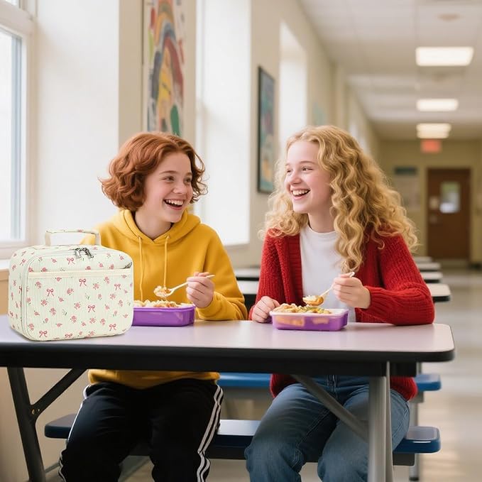 Bluboon Kids Girls Lunch Bag Insulated Lunch Box for school Corduroy Lunch Cooler Organizer School Kids Lunch Tote