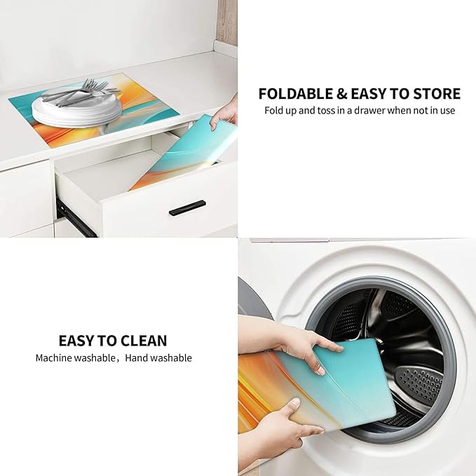 - Perfect Gift Choice: This teal orange geometric wave dish drainer mat is an excellent choice. It’s a foldable dish drying mat that’s both practical and decorative. Our absorbent and decorative kitchen counter mat makes an ideal gift for housewarmings, new home renovations, as well as occasions like Christmas, Mother's Day, birthdays, and Thanksgiving, delighting friends and family who love a stylish kitchen