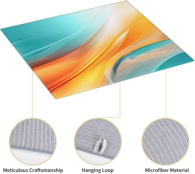 - Unique Teal Orange Geometric Wave Design: Stand out with this decorative drying mat featuring a modern teal and orange geometric wave pattern. It’s not just an absorbent drying mat but also a stylish kitchen counter mat that adds a touch of modern art to your kitchen decor, perfect as a countertop drying mat with geometric flair. The reverse side is pure gray, and it has a hanging loop for easy storage, combining functionality with stylish design